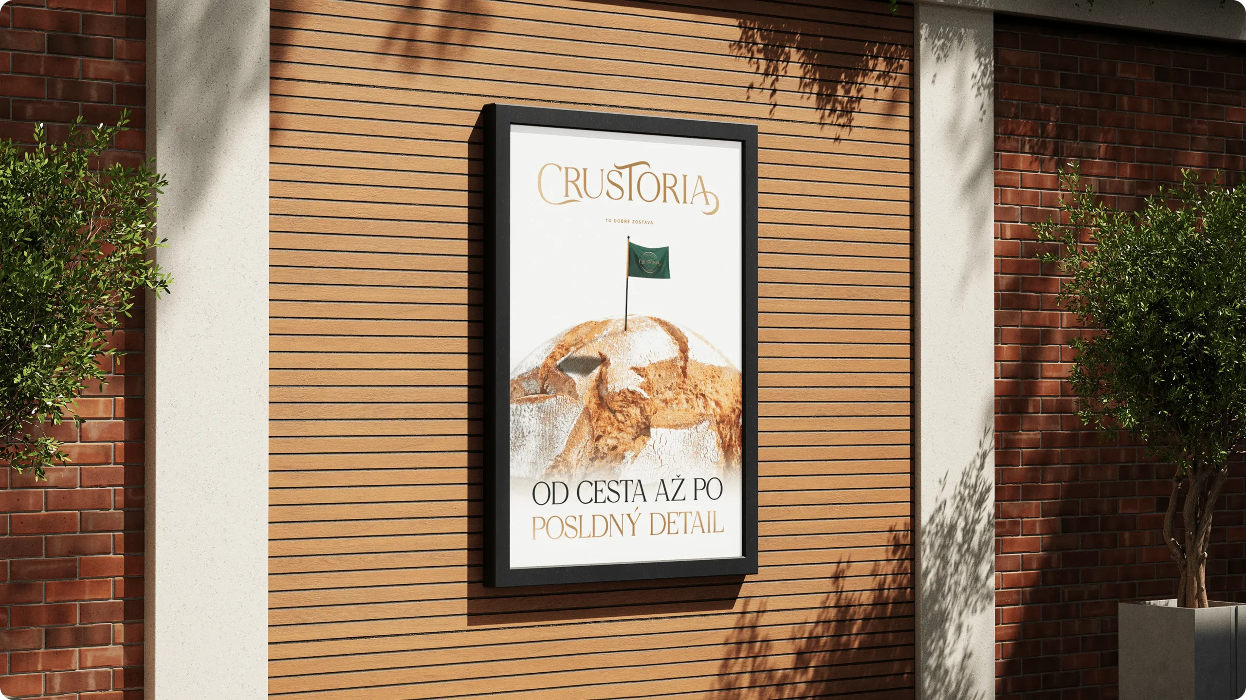 Vizuálna identita Crustorie odráža remeselný charakter značky a jej dôraz na kvalitu. Kombinuje moderný prístup s tradičnými hodnotami a vytvára jasný, zapamätateľný a dôveryhodný obraz značky. Je konzistentná naprieč všetkými kanálmi a pripravená posilniť zákaznícky zážitok od obalového dizajnu až po interiér predajní. Crustoria Naming, logo, brand identita, dizajn manuál, typografia, farebný systém, tlačové a digitálne materiály, ikonografia, pattern, obalový dizajn, 3D vizualizácie predajne a kiosku Crustoria je značka, ktorá prináša poctivé remeslo a chuť tradície v modernom šate. Vytvorili sme pre ňu kompletnú identitu od loga až po 3D vizualizácie predajne a kiosku. ⸻ Výzva Prepojiť tradíciu pekárskeho remesla s moderným zážitkom z nakupovania. Crustoria chcela pôsobiť ako značka, ktorá stojí na čerstvosti a remeselnej kvalite, no zároveň prináša súčasný a zapamätateľný vizuálny štýl. Výzvou bolo navrhnúť identitu, ktorá funguje rovnako dobre na obale pečiva, v online komunikácii aj v samotnej predajni. ⸻ Naše riešenie Komplexný vizuálny systém postavený na remesle, detailoch a atmosfére. Logo s jemne zaoblenými líniami pôsobí prístupne a ľudsky, typografia Gotham a Archane spája moderný charakter s eleganciou. Farebná paleta odkazuje na chrumkavú kôrku chleba aj na prírodné odtiene surovín. Ikonografia a pattern reflektujú remeselnosť a dopĺňajú identitu v digitálnych aj tlačových aplikáciách. Okrem základných brand prvkov sme navrhli aj pracovné oblečenie, obalový dizajn a reklamné predmety. ⸻ Vizuálna identita Remeselný charakter pretavený do všetkých detailov. Súčasťou riešenia bol podrobný dizajn manuál, ktorý definuje použitie loga, typografie a farebného systému naprieč všetkými formátmi. Vizitky, hlavičkový papier či obálky nadväzujú na čistý a dôveryhodný štýl značky. Digitálne výstupy ako e-mailové podpisy, bannery či favicon sú pripravené tak, aby Crustoria pôsobila konzistentne aj v online priestore. Identitu dopĺňa ikonografia so zaoblenými líniami, korporátny pattern a variabilný systém aplikácií, ktorý zabezpečuje, že značka ostáva zapamätateľná a rozpoznateľná vo všetkých kanáloch. ⸻ 3D vizualizácie Predajňa a kiosky ako súčasť brand experience. Navrhli sme 3D vizualizácie predajní a kioskov, ktoré prinášajú identitu značky priamo do fyzického priestoru. Premyslený interiér, atmosféra čerstvo upečeného pečiva a remeselný charakter dizajnu vytvárajú miesto, ktoré posilňuje príbeh značky a prináša zákazníkom autentický zážitok. ⸻ Výsledok Značka, ktorá chutí aj vizuálne. Crustoria získala identitu, ktorá komunikuje poctivé remeslo, tradíciu a moderný životný štýl. Vizuálny systém sa premieta od loga cez obaly až po samotné predajne. Značka dnes pôsobí dôveryhodne, zapamätateľne a prináša zákazníkom atmosféru, ktorú si odnášajú so sebou spolu s produktmi.