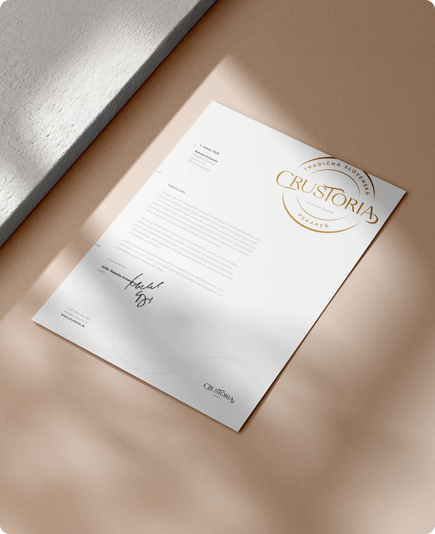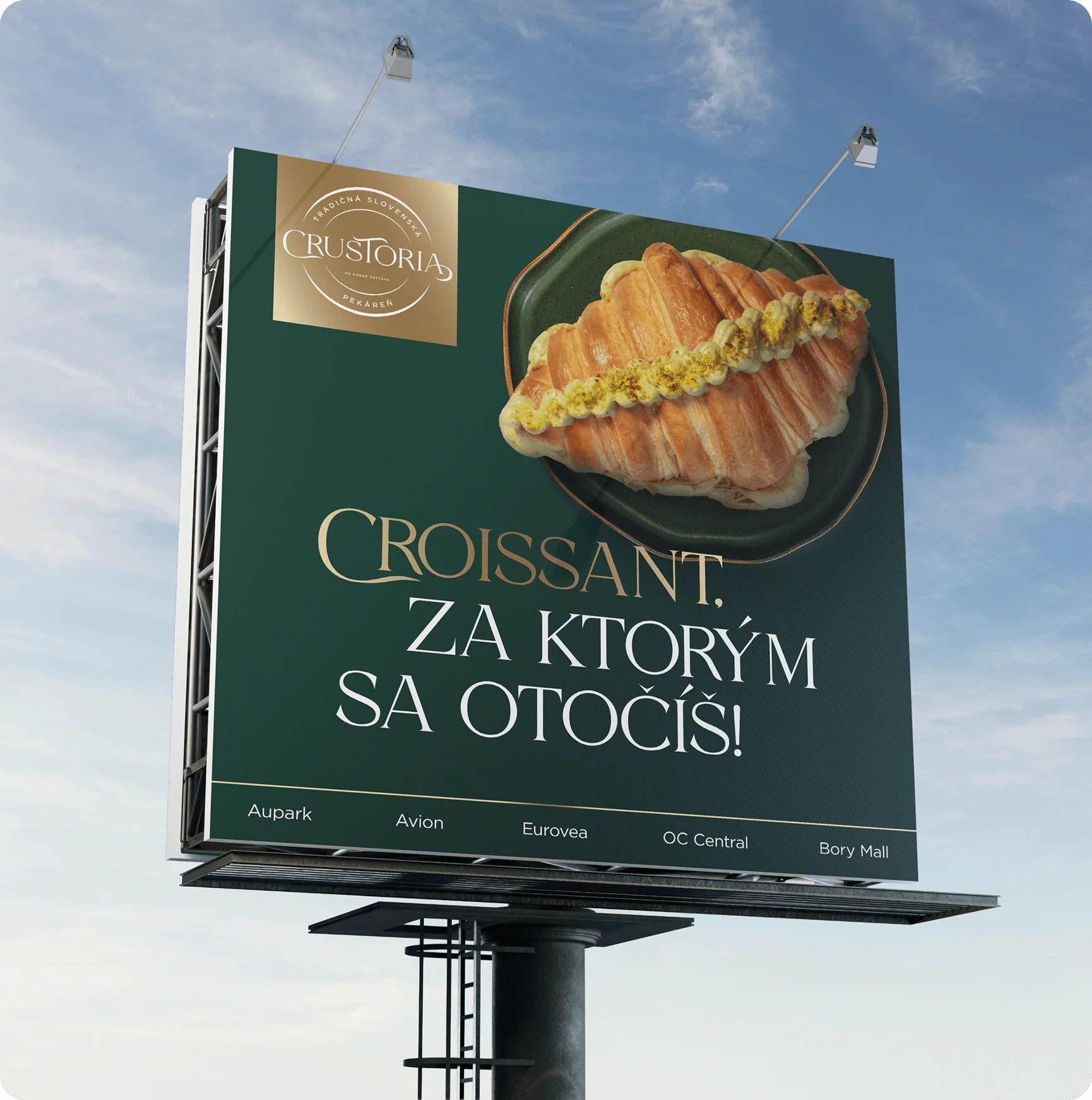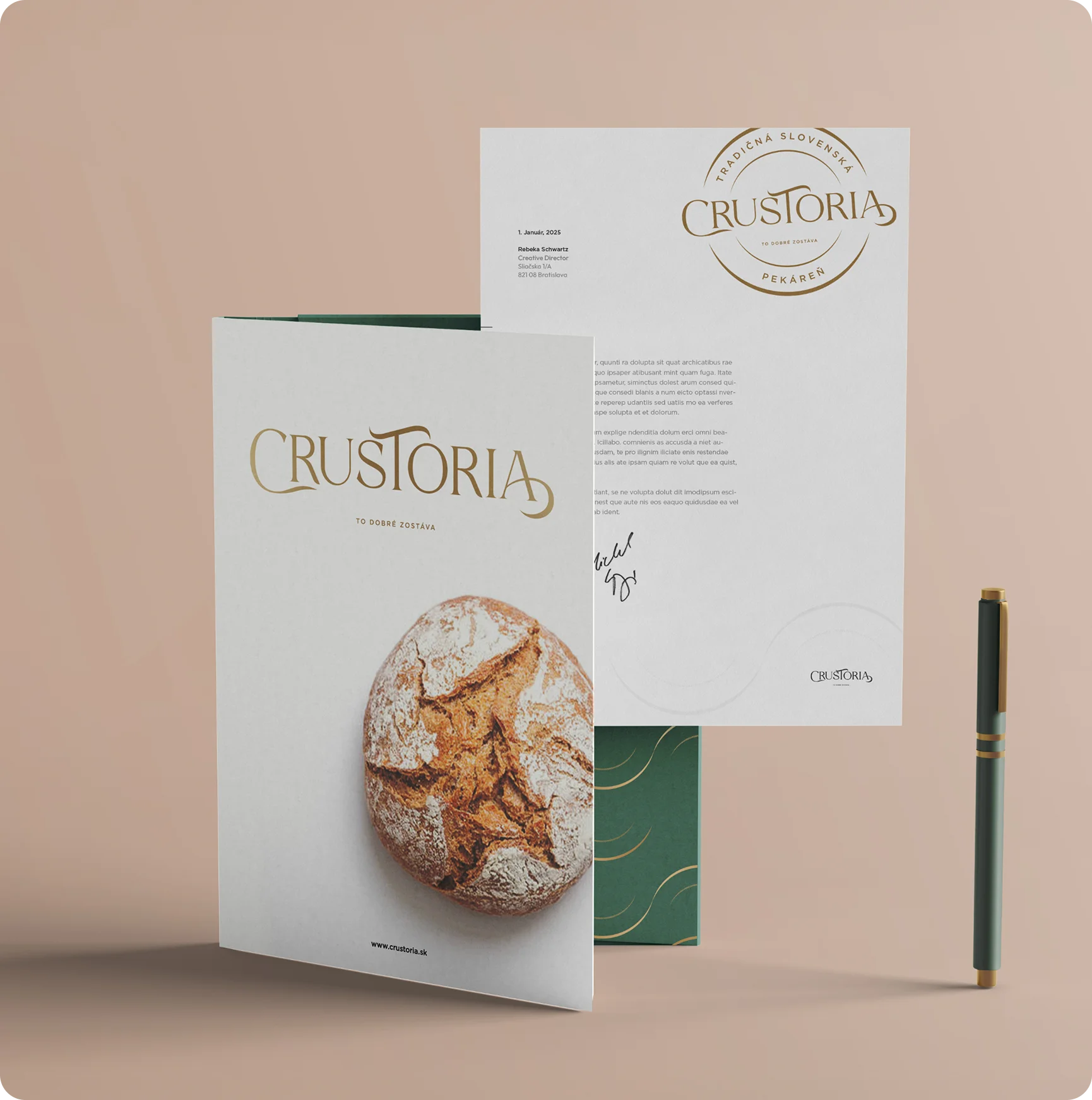 Crustoria je značka, ktorá spája poctivé remeslo a chuť tradície s moderným vizuálnym štýlom. Vytvorili sme pre ňu kompletnú identitu od loga až po priestorové riešenia predajní.