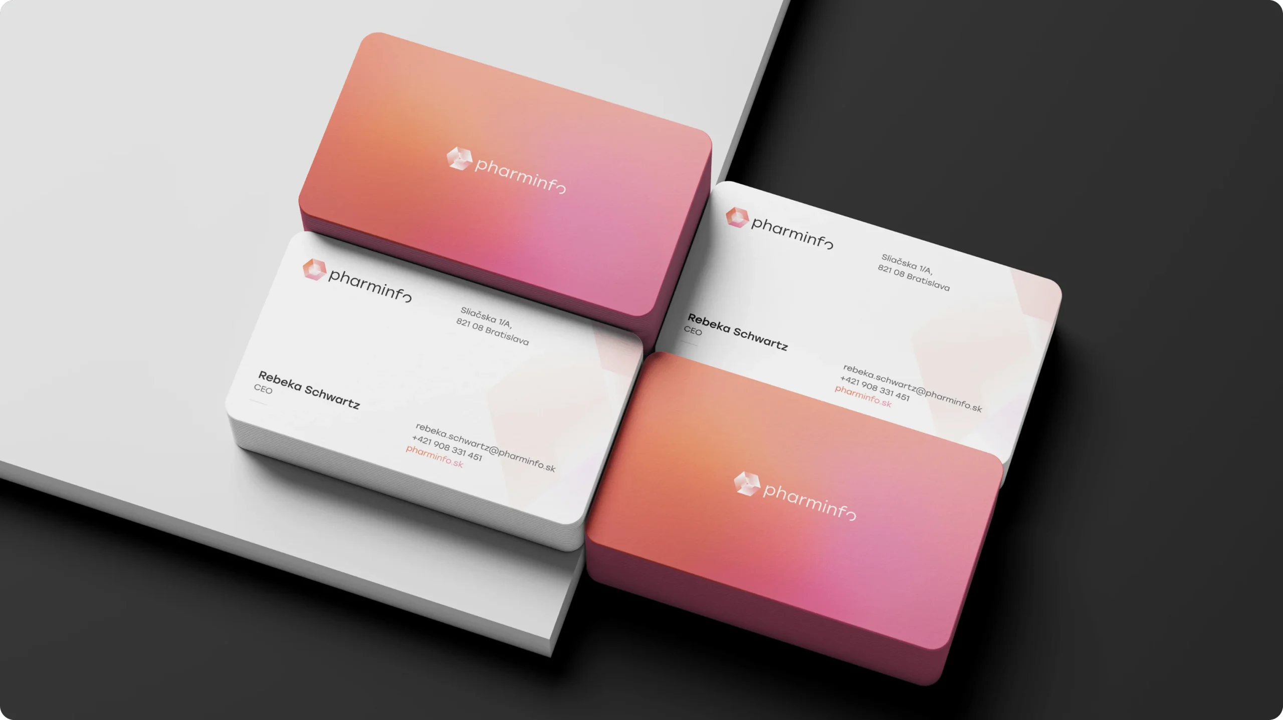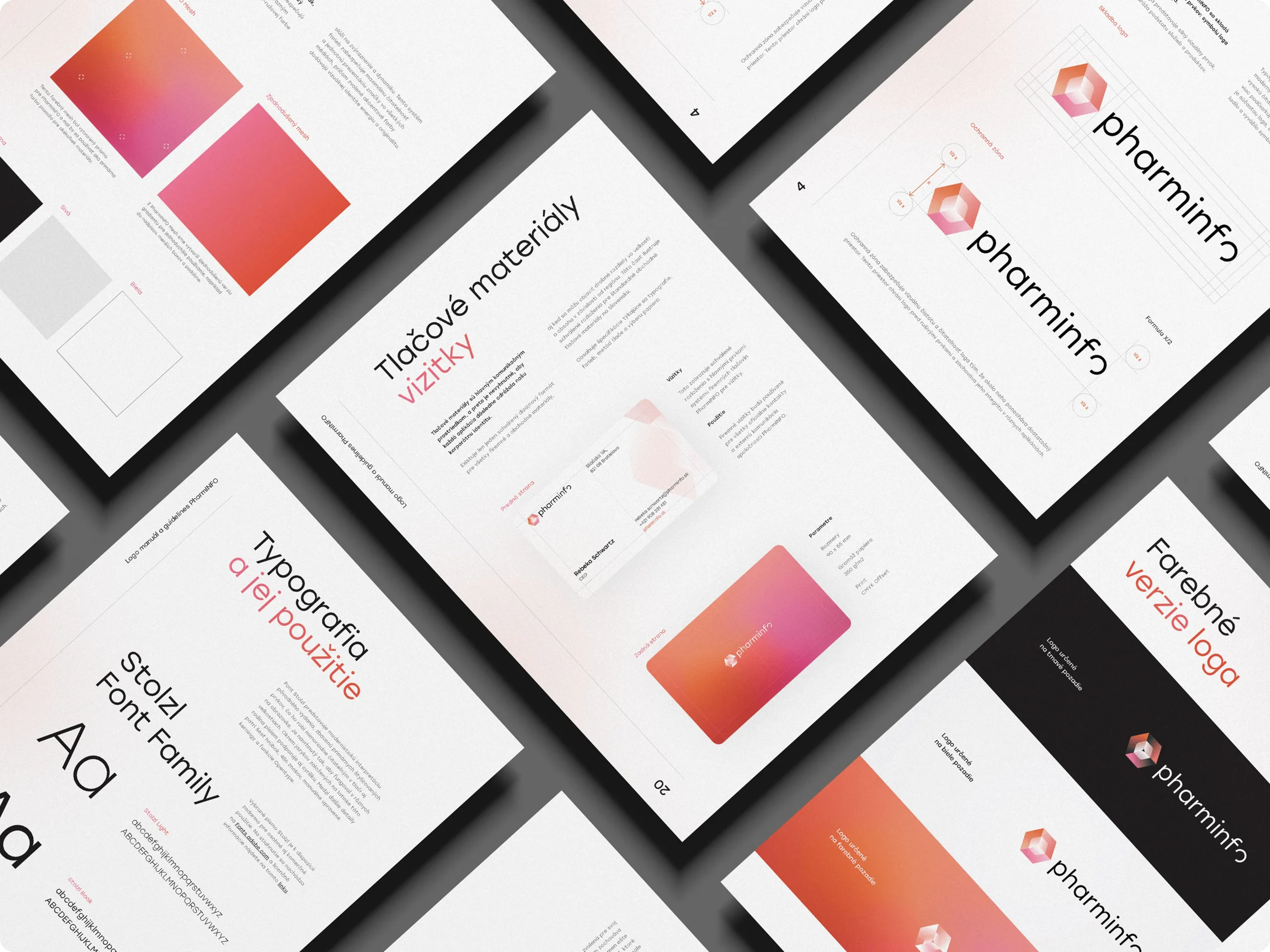 Minimalistická forma, precízna typografia a vlastný mesh gradient odrážajú systémovosť, na ktorej značka stojí. Výsledkom je nadčasová identita pre značku, ktorá síce pôsobí v pozadí, no formuje celý trh. PharmINFO Nová identita pre značku, ktorá nastavuje štandardy v slovenskom farmaceutickom prostredí. PharmINFO je technologický líder, ktorého služby stoja v úzadí, no sú kľúčové pre každodenné fungovanie farmaceutického trhu. Stará sa o správu ADC Číselníka — štandardizovaného systému identifikácie liekov a zdravotníckych produktov na Slovensku, ktorý zaručuje jednotnosť v distribúcii, predaji aj evidencii. Napriek tomu, že ide o technologickú a odbornú autoritu, vizuálna prezentácia značky za ňou zaostávala. ⸻ Výzva Modernizovať identitu značky, ktorá reprezentuje presnosť, stabilitu a technickú odbornosť. Pôvodný web i logo PharmINFO už neodrážali šírku a technologickú podstatu služieb, ktoré firma ponúka. Cieľom bolo pripraviť modernú, nadčasovú vizuálnu identitu a navrhnúť nový web, ktorý by jasne, spoľahlivo a sebavedome komunikoval technologický základ značky – bez zbytočných nánosov, ale s dôrazom na kvalitu, istotu a systém. ⸻ Naše riešenie Kompletný vizuálny reštart značky: nový logotyp, systémový manuál, ikonografia, typografia aj web dizajn. Vychádzali sme z technologickej podstaty značky – PharmINFO je viac ako len prevádzkovateľ číselníka. Je to infraštruktúra. Dizajn preto staviame na princípe precíznosti, modularity a čistoty. Logo reprezentuje systém – zložený, no zrozumiteľný. Typografia Stolzl spája technický charakter s modernou čitateľnosťou. Farebný mesh vytvára subtílny technologický dojem, ktorý jemne oživuje inak racionálne pôsobiacu paletu čiernej, bielej a sivej. ⸻ Vizuálna identita Minimalizmus s dôrazom na poriadok, čitateľnosť a adaptabilitu. Značka dostala novú podobu, ktorá pôsobí nadčasovo a dôveryhodne – či už ide o hlavičkový papier, vizitku, web alebo symbol na favicon. Základný logotyp bol doplnený o minimalistický symbol, ktorý možno samostatne použiť v technických kontextoch — ako signál spoľahlivosti systému, ktorý funguje v pozadí. Farebný systém bol navrhnutý s dôrazom na digitálne aj tlačové použitie. Primárny gradient „PharmINFO mesh“ tvorí základné vizuálne pole pre identitu značky. Ikonografia rešpektuje hrúbku a oblý štýl loga, čím vytvára vizuálnu jednotu medzi všetkými výstupmi. ⸻ Web, ktorý dýcha technológiou Prehľadný, technicky precízny a funkčný – presne ako služby PharmINFO. Stránka pharminfo.sk bola navrhnutá tak, aby nekládla odpor. Jasná navigácia, systémová štruktúra a zrozumiteľná prezentácia informácií boli prioritou. Veľký dôraz sme kládli na zobrazenie technologických riešení, ktoré sú za ADC číselníkom – nie cez zložité schémy, ale cez prístupnú, štruktúrovanú komunikáciu. ⸻ Výsledok Značka, ktorá dnes vizuálne reflektuje svoju odbornú hodnotu. Nový dizajn posilnil dôveryhodnosť značky a vytvoril základ pre jej ďalší rast. Web sprístupnil služby PharmINFO širšiemu publiku – od odborníkov až po laickú verejnosť. Vizuálna identita zase poskytuje konzistentný rámec pre všetku budúcu komunikáciu – od dokumentácie až po budovanie pozície autority na trhu.